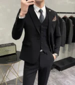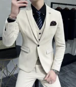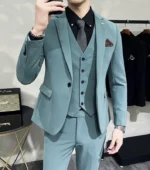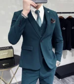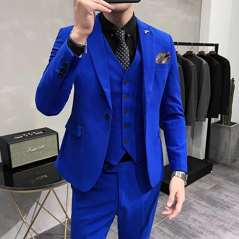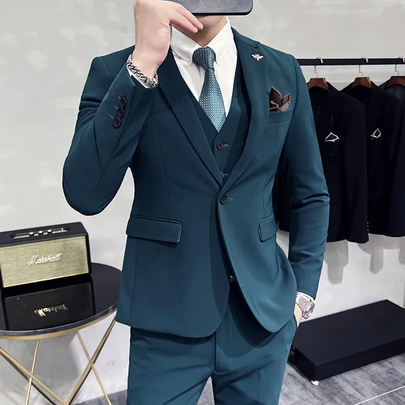 (Jacket + Vest + Pants) High-end Brand Boutique Fashion Solid Color Business Office Mens Casual Business Suit Groom Wedding Gown
